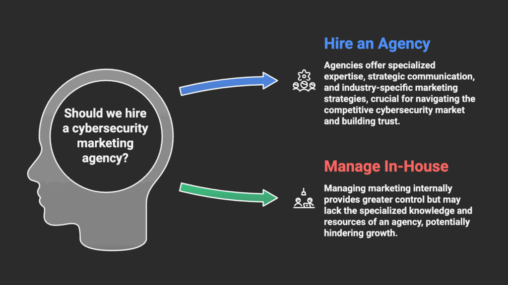 - Marketing support aligned with company growth – Scalable agency support allows cybersecurity companies to meet increasing marketing demands as the business grows.