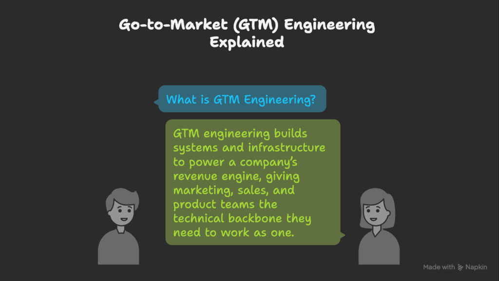 Go-to-Market (GTM) engineering is the discipline of building the systems and infrastructure that power a company’s revenue engine. It gives marketing, sales, and product teams the technical backbone they need to work as one.